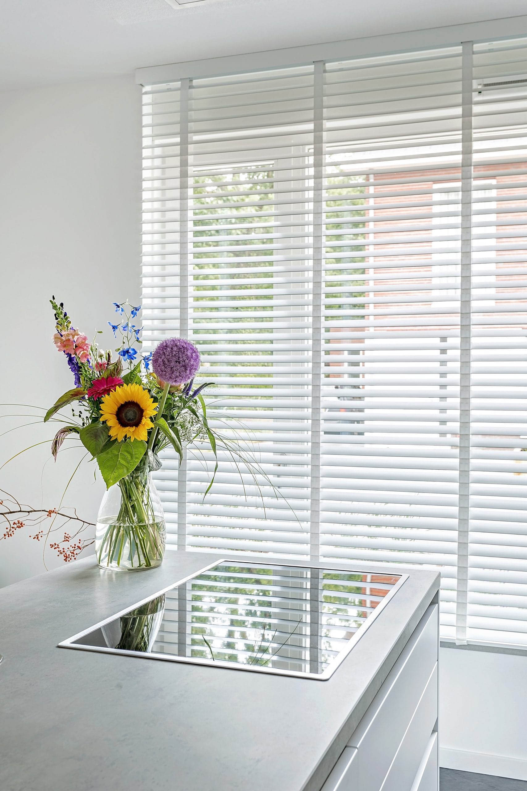 Aluminium jaloezieën bieden een strakke, moderne en veelzijdige oplossing. Lichtgewicht maar robuust van constructie, zijn ze onderhoudsarm en bestand tegen vocht, waardoor ze ideaal zijn voor keukens en badkamers. De slanke, verstelbare lamellen zorgen voor een eigentijdse uitstraling die perfect in elk interieur past.